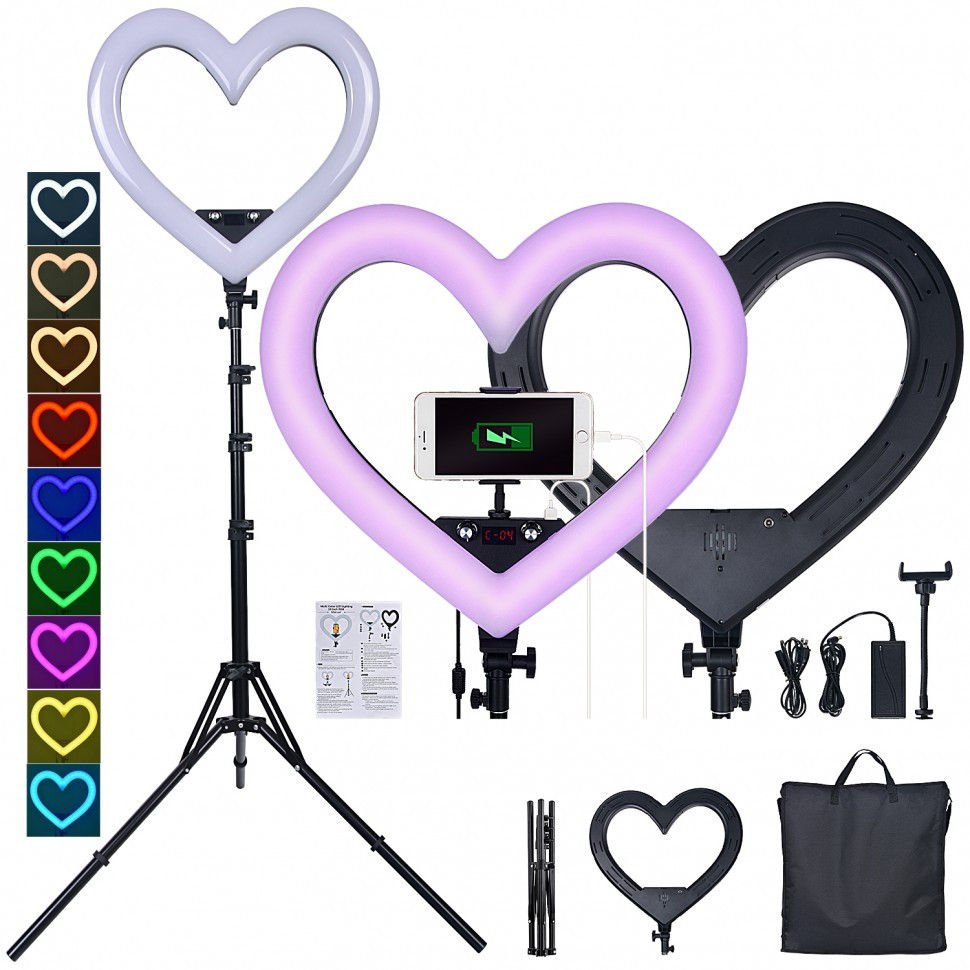 Большая селфи лампа в форме сердца со штативом и держателем для телефона